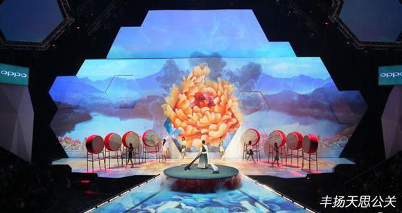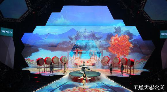 在背景舞美多媒體視覺設計上,以盛放的牡丹、古雅的拱橋與湖心的亭臺作為主要元素,配合大鼓道具、干冰,讓舞臺呈現一個唯美的意境